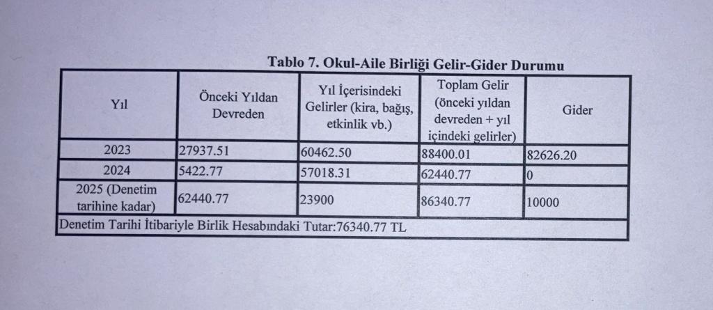 Okul Aile Birliği Gelir Gider Durumu Görseldeki gibidir.